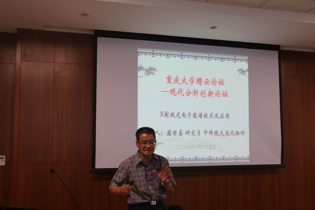 2018年6月25日下午2时,分析测试中心特邀中国科学院大连化学物理研究所盛世善研究员在重庆大学虎溪校区理科楼LA104,为校内外师生作“X射线光电子能谱(XPS)技术及应用”的专业技术讲座。讲座由分析测试中心主任周小元主持。